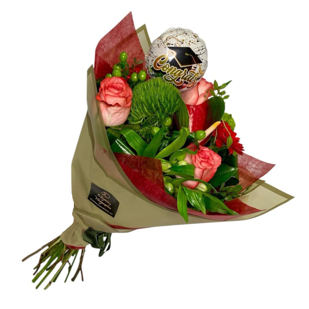 Ballagási vegyes tölcsércsokor lufival