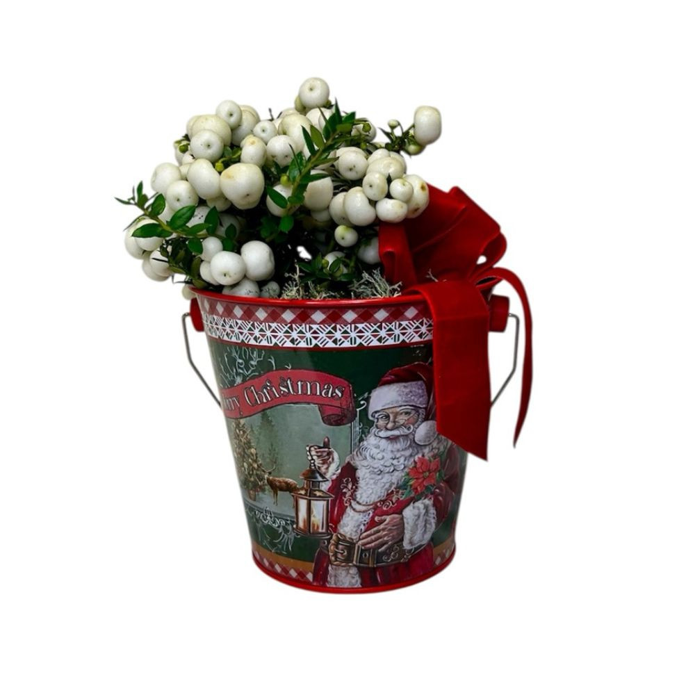 Karácsonyi hóbogyó stílusos kannában, ideális ajándék vagy dekoráció. A cserép átmérője 10 cm, a teljes magasság 20 cm, így kompakt méretével bármely polcon, asztalon vagy ablakpárkányon elhelyezhető, ünnepi hangulatot varázsolva.