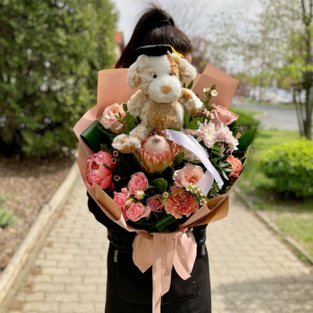 Proteás ballagási csokor kutyussal